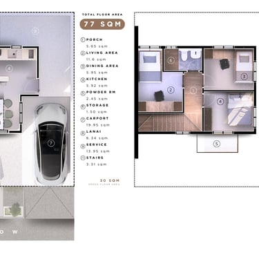 As you enter Benjamin, a well-designed front porch welcomes you, leading into a cozy yet spacious living area. The open-plan layout seamlessly connects the dining and kitchen areas, creating an inviting space for family meals and gatherings. A service area at the back adds functionality, making household chores more efficient. The ground floor also features a strategically placed bedroom, ideal for guests, a home office, or elderly family members, along with a common toilet & bath for added convenience.