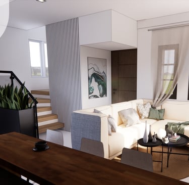 A spacious two-level retreat that balances modern design with functionality. Featuring distinct living and sleeping areas, it provides ample space for a growing family while maintaining a warm, inviting atmosphere.